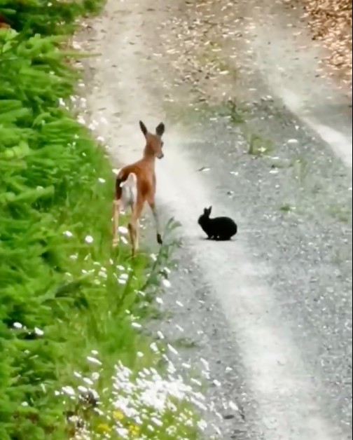 2020年08月09日不同種族的動物也能成為好朋友!加拿大網友Kelly Manis在不列顛哥倫比亞省的考津谷經營一間寵物旅館,有一天她看到了非常有趣的一幕:一隻小鹿和一隻黑色的兔子並肩而行,看起來非常親密,就像認識了好久的老朋友。