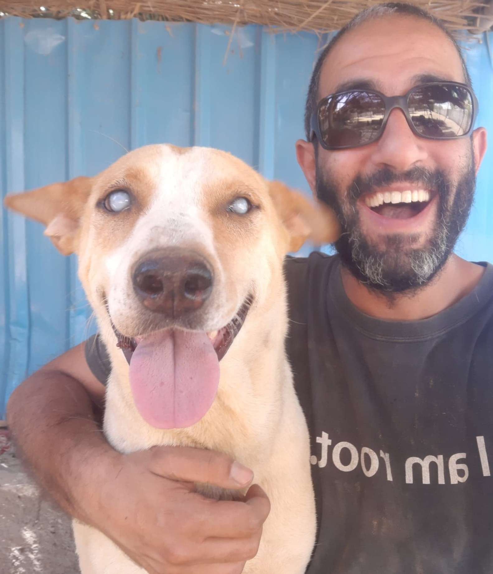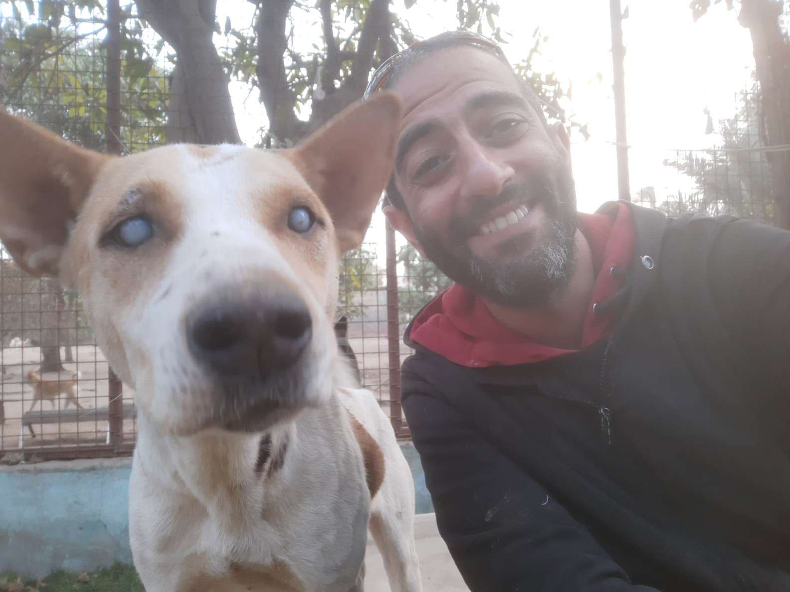 ▼Arafa的眼睛看不到,但牠對聲音非常敏感,每次聽到好朋友那熟悉的聲音,都能精準跑到朋友身邊。每天早晨Ahmed來到收容所,只要呼喚狗狗的名字,Arafa就會開心跑過來跟他說早安。Ahmed說:「Arafa總是陪在我身邊,就像我的小保鑣。每次我到收容所來,牠都會熱情迎接我,這讓我了解到狗狗無條件的愛有多珍貴。」