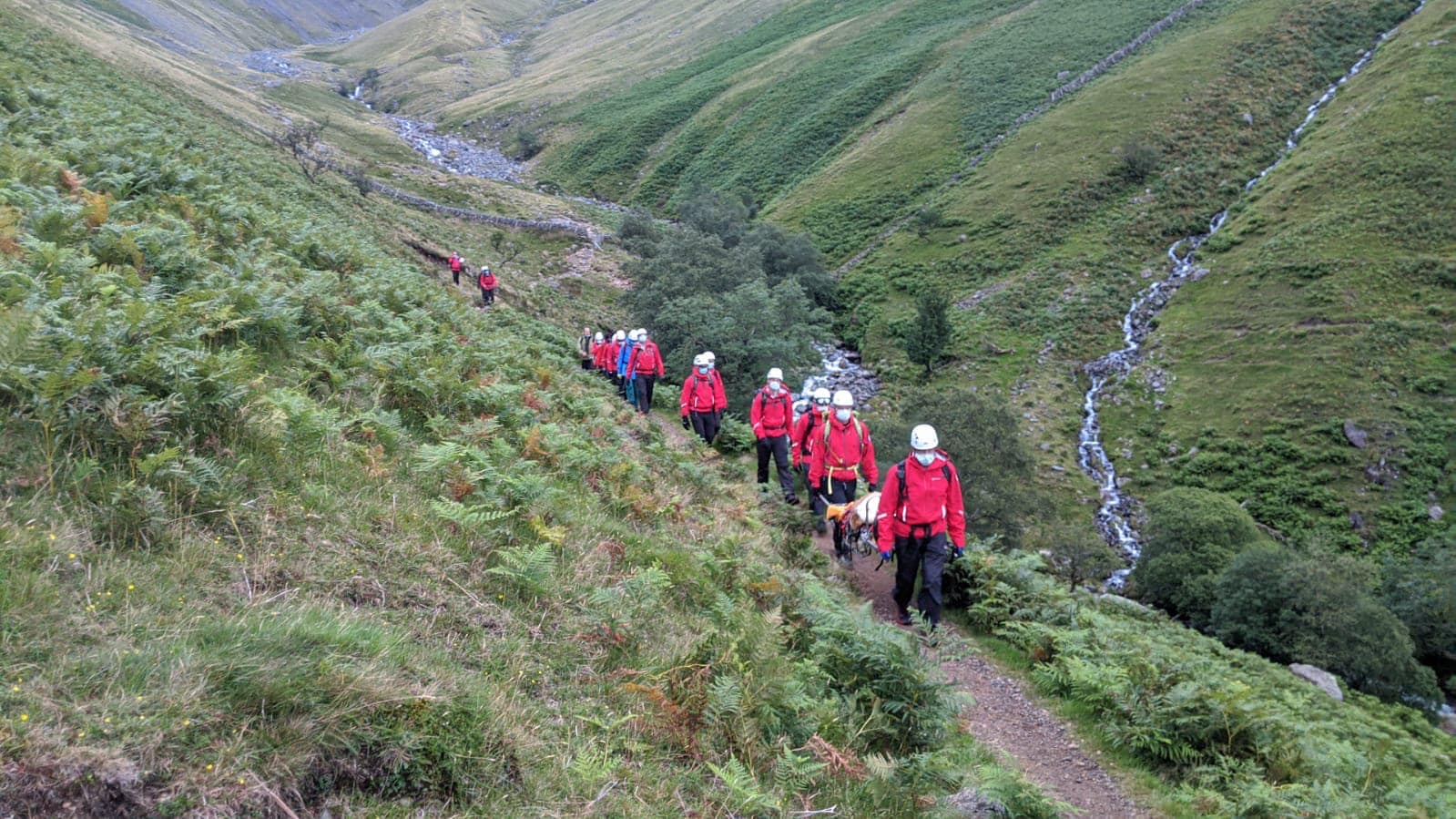 ▼那天家人帶Daisy去攀登英格蘭最高峰斯科費爾峰(Scafell Pike)。一家人準備下山時,重達55公斤的Daisy卻突然不走了。家人實在沒有辦法,只能向沃斯代爾山區救援隊(Wasdale Mountain Rescue Team)求助。救援隊的志工立刻出動,他們表示:「我們的團隊成員家裡有寵物狗,我們也有搜救犬,所以我們能理解狗狗和主人現在的苦惱。」