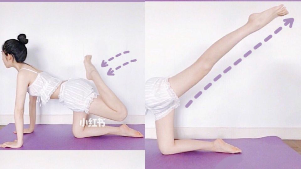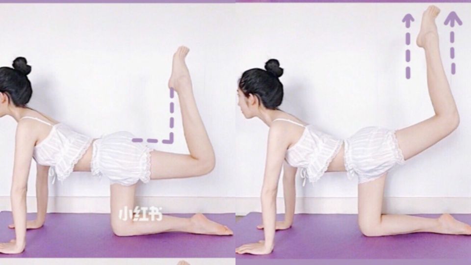 ▼芭蕾瘦腿法需要以四肢跪在瑜伽墊上,大腿膝蓋保持90度,同時收腹、抬頭,每一個動作做四個八拍。1.曲腿運動:將一隻腿的膝蓋向斜上方伸直,腳尖要有延伸感,使用大腿的力量發力。收回膝蓋時不要駝背、慢慢回到原點。這個動作能夠瘦大腿內側,甩掉屁股連接處的贅肉。