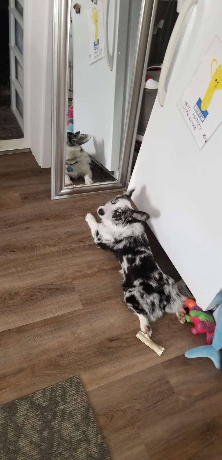 2020年08月15日很多人逗狗狗時會讓牠們看鏡子中的自己,狗狗們的反應往往非常有趣。國外網友Ashley Spada養了一隻叫Freyja的狗狗,Freyja剛剛來到新家幾個月,還在適應新環境。牠非常聰明,學東西很快,卻一直不認識鏡子中的自己。牠每次照鏡子的反應都讓人忍俊不禁。