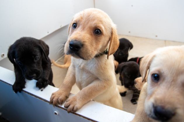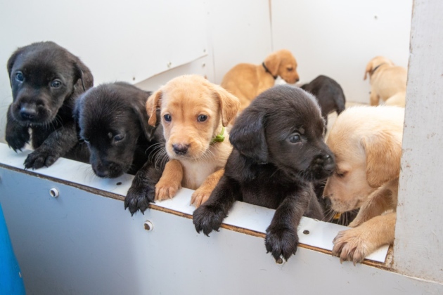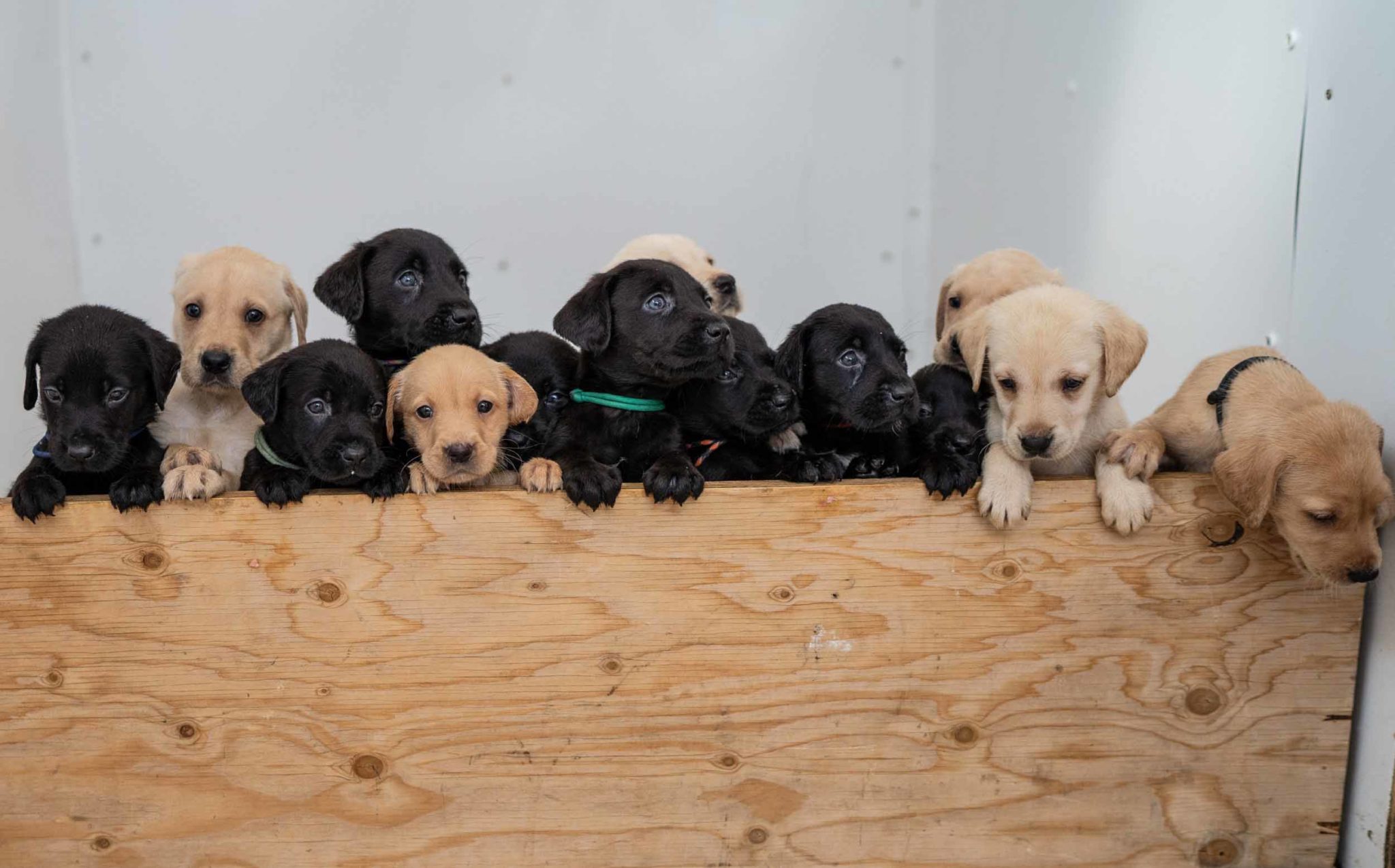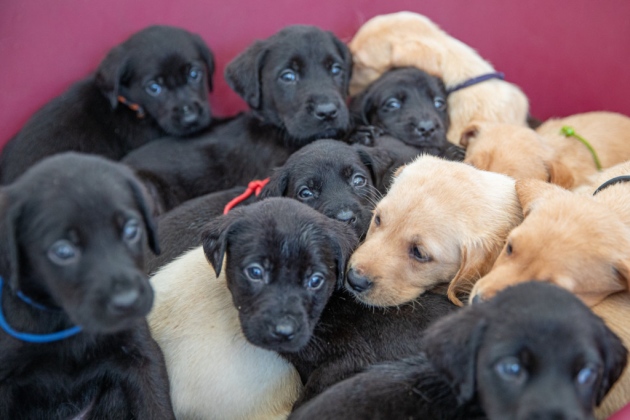 ▼Bella和狗爸爸Scooby都是黃色拉布拉多,牠們的14個小孩裡竟然有8隻是黑色的。應該是Bella和Scooby有黑色拉布拉多的基因,所以才能生下兩種顏色的小孩,狗狗的黑色基因太強大了。