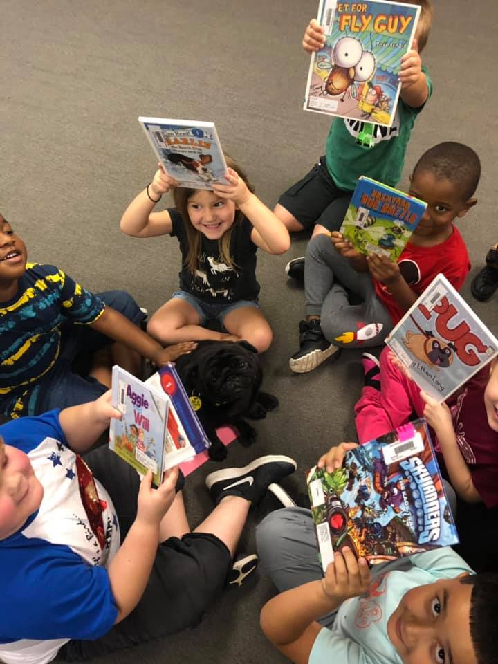 ▼Booker的到來增加了孩子們的閱讀興趣,也幫很多孩子克服了對狗狗的j畏懼。非營利組織「Get Georgia Reading」調查顯示,當地約有2/3的小學三年級學生閱讀水平低於這一年齡該有的水平,幸好有Booker,南塞勒姆小學的情況正在改善。