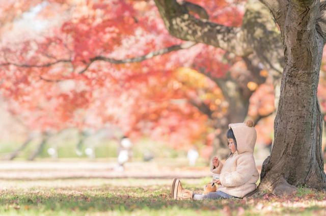 ▼秋天漫山遍野都是紅楓,母女兩人一起去賞景、一起去盪鞦韆: