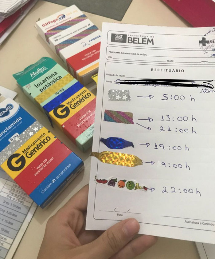 ▼醫生為不識字的患者做了一張特別的服藥醫囑。