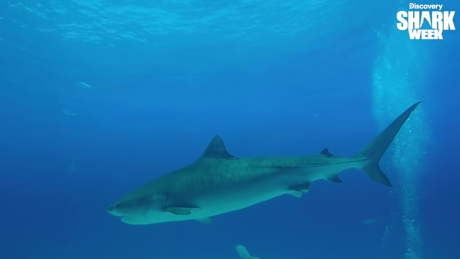 ▼2000年時Jim到巴哈馬群島研究海洋生物,那裡是著名的潛水勝地,還有很多虎鯊。有一天Jim潛水時,一隻虎鯊突然朝他游了過來,不過游了一小段距離就離開了。Jim注意到,這隻虎鯊約有5公尺長,在這片海域中幾乎是體型最大的鯊魚。他對虎鯊的行為很感興趣,想要靠近觀察,又怕驚擾牠,只能遠遠看著。