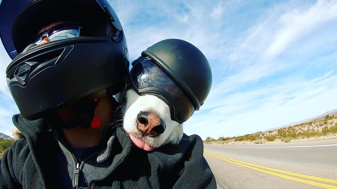 ▼出發之前,Michael花了4個月時間準備。他練習騎機車、讓Sox也習慣坐在機車後座。一段時間後,Sox已經愛上了騎機車的感覺,每次騎機車兜風都會露出燦爛的笑容。把拔還為牠準備了護目鏡和安全帽,既保護牠的安全,又讓牠看起來更酷、更潮。