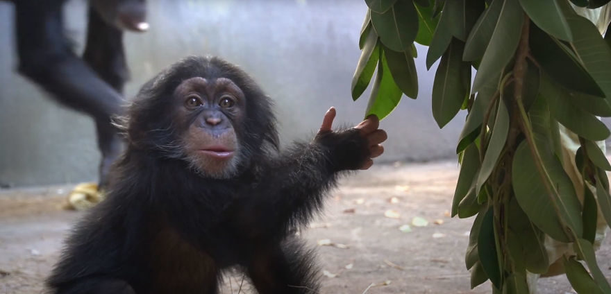 ▼Djibril是西非黑猩猩,這一族群因為棲息地被破壞已經快要消失了。BIOPARK動物園一直在做西非黑猩猩的繁育工作,取得了很大的進展。