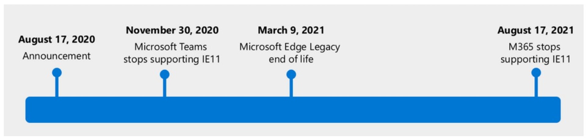 ▼從微軟公布的時間表可以看到,網上工作管理軟件Microsoft Teams的網絡應用程式將從2020年11月30日起終止支援IE11;從2021年3月9日起結束對舊版Edge瀏覽器的支援;2021年8月17日起,Microsoft Office 365的應用程式,包括OneDrive和Outlook等將不再支援IE11。