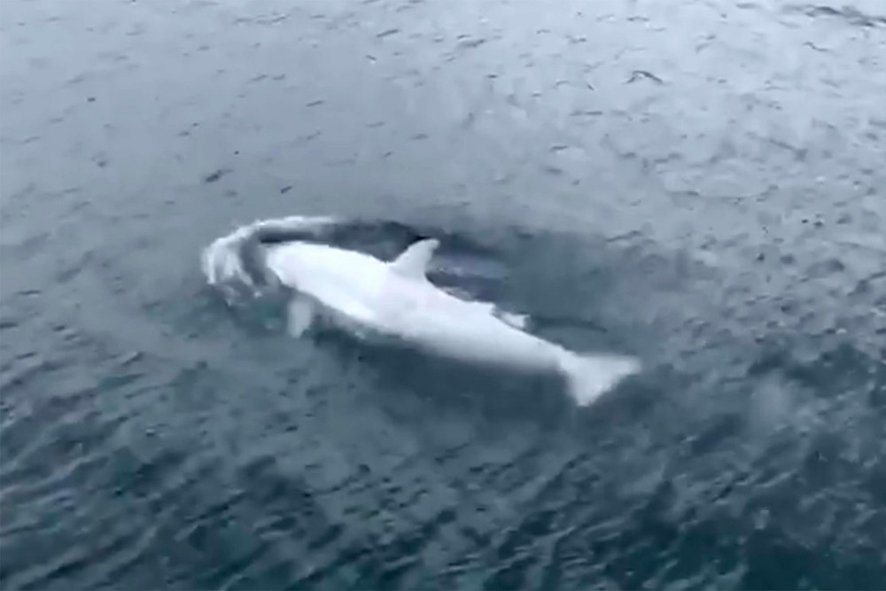 世界僅5隻!極罕「純白虎鯨」現身海面 在鯨群裡「白到發光」網驚呼:好美喔