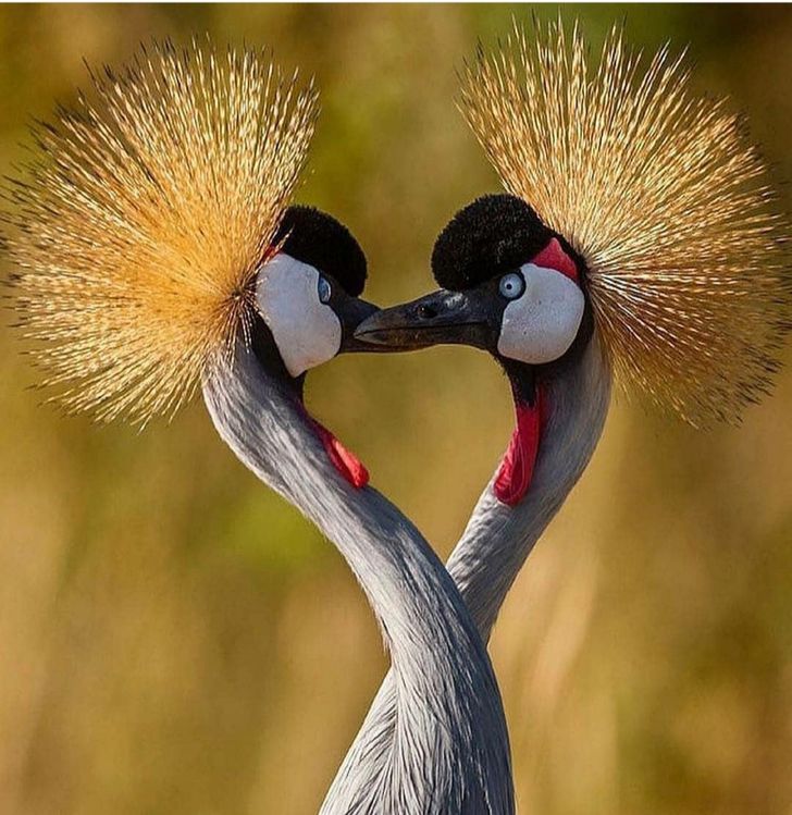 ▼3.灰冠鶴:這種鳥很有儀式感,配對成功、確定彼此為情侶關係後,會在眾鳥面前熱情跳舞,就像舉辦婚禮一樣接受同伴們的祝福,然後再一起去築巢。
