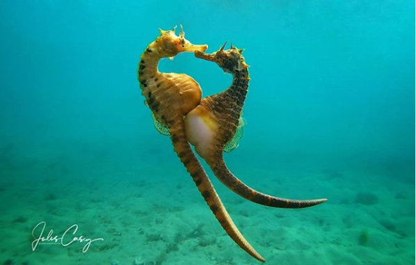 ▼7.懷氏海馬:雄海馬會負責孕育後代,繁殖季節雌海馬會主動追求雄海馬,雙方確定關係後就會一直在一起。