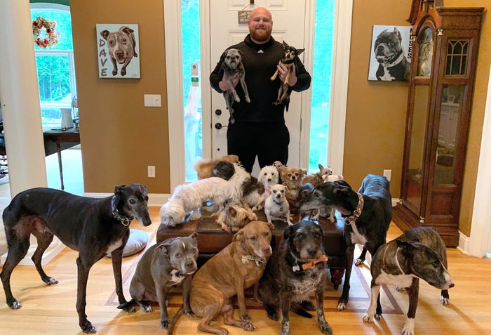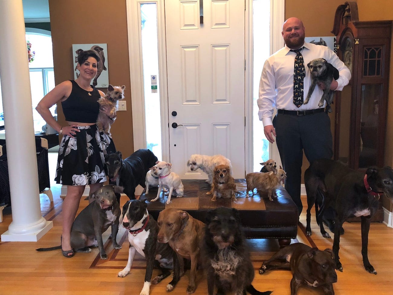 ▼Chris和Mariesa剛開始沒有想領養21隻老年狗狗,這是自然而然發生的。他們每天早上要花45分鐘給狗狗們餵食、喂藥。