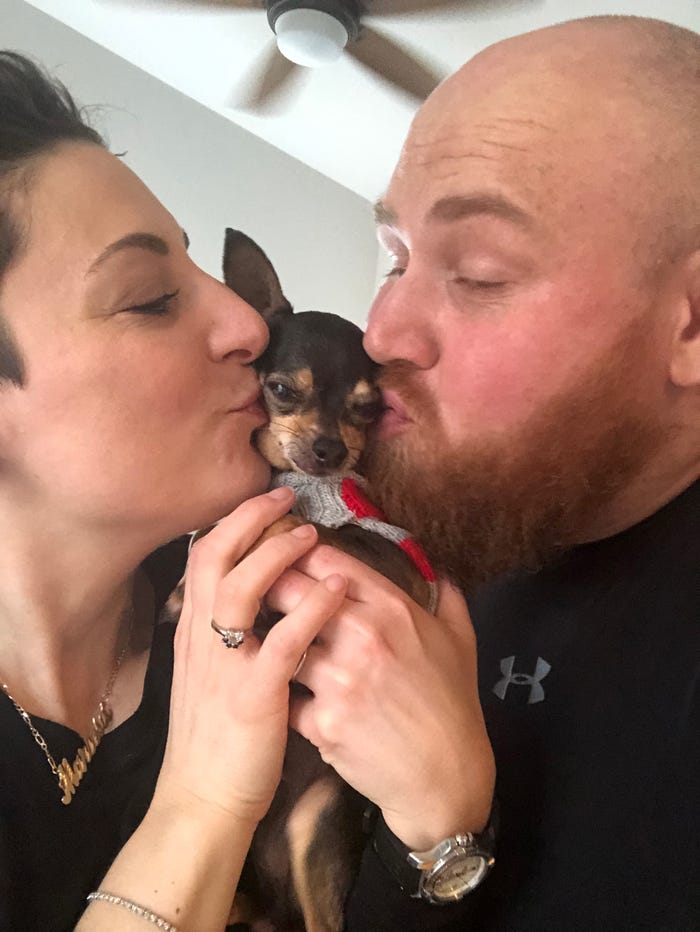 ▼他們各自養了好幾隻狗狗,在認識彼此的2個月前,Chris收養了一隻叫Moses的12歲老狗,Mariesa也非常喜歡牠。