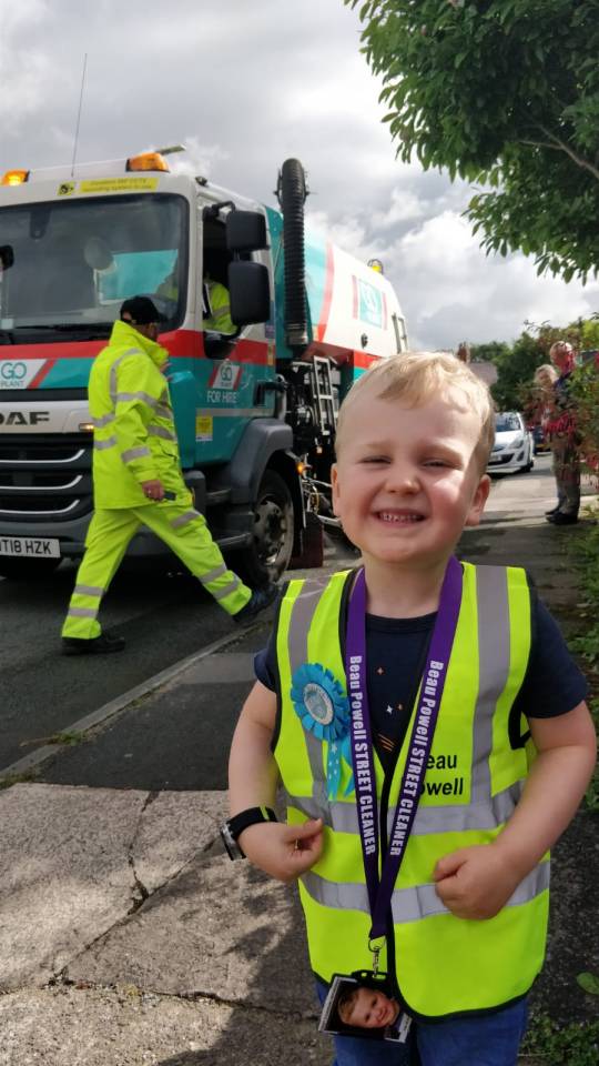 ▼由於小波從很小很小的時候就一直著迷於清道車,只要當一家人一起外出上街時,小波看到路上的清潔員和清道車都會停下腳步,然後入迷的直盯著看,小波的幼兒園老師也告訴鮑威爾夫婦說,只要在課堂上,窗外有清潔員經過時,小波一定會轉頭去看,顯得非常的喜歡,小波甚至也告訴老師,他長大要成為一名清潔員。