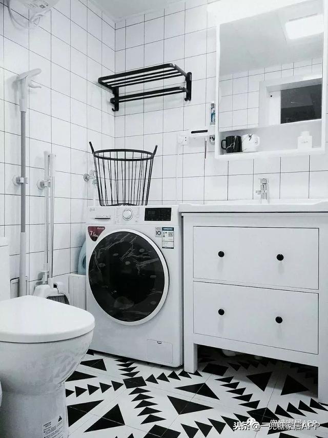 ▼10.免釘上牆,靠近重點清潔區收納:把廁所的邊邊角角利用起來,就能收納清潔用品。這位屋主就在馬桶與洗衣機中間的牆壁上裝免釘掛鉤,用來放濕水掃帚拖把。