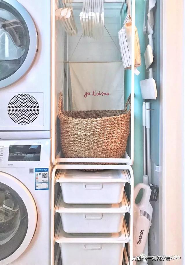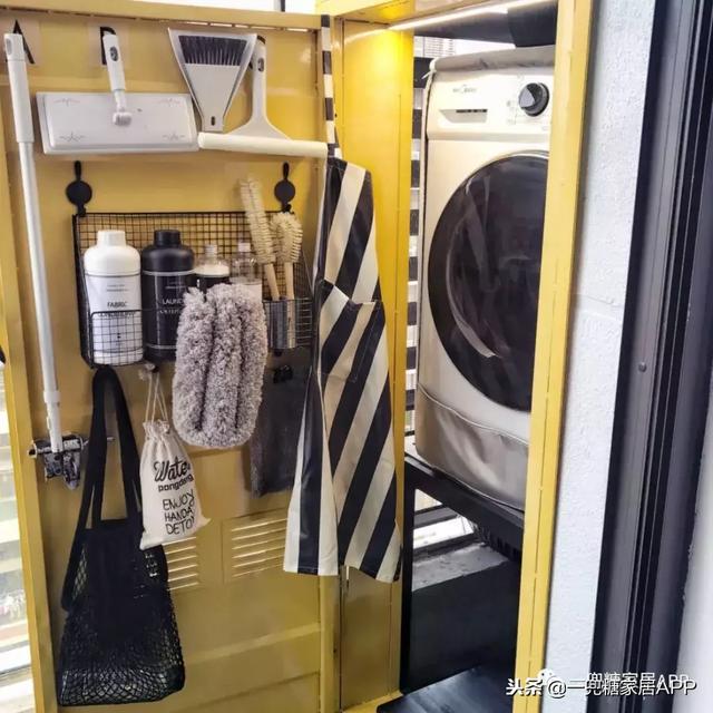 ▼9.洗衣房變成家務儲藏間:廚房和廁所之間的狹窄洗衣房,就是很理想的家務空間。用宜家艾格特和普拉薩組合,能夠隨意調整內部的空間,再裝一個門簾,看起來很隱蔽,又能輕鬆安放各種工具和清潔劑。