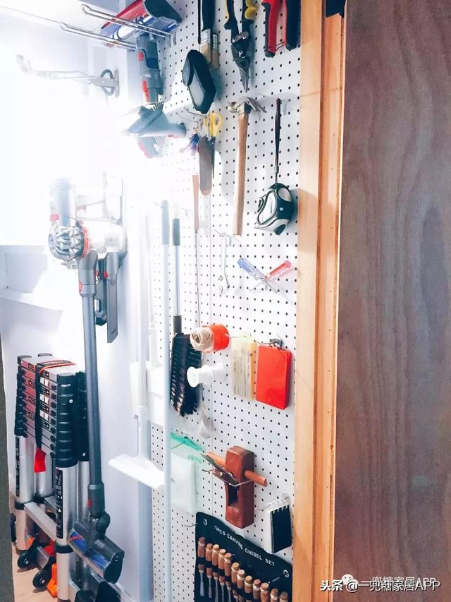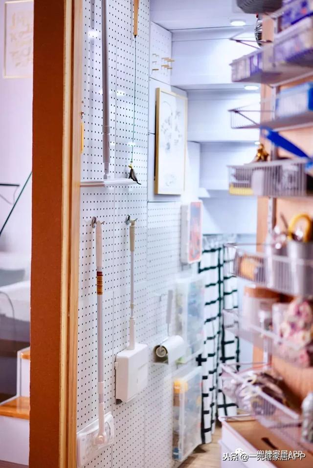 ▼4.樓梯間:如果是Loft戶型的話,可以把樓梯間變成絕好的收納空間。在牆壁上裝洞洞板,把工具掛在上面,看起來很整齊。