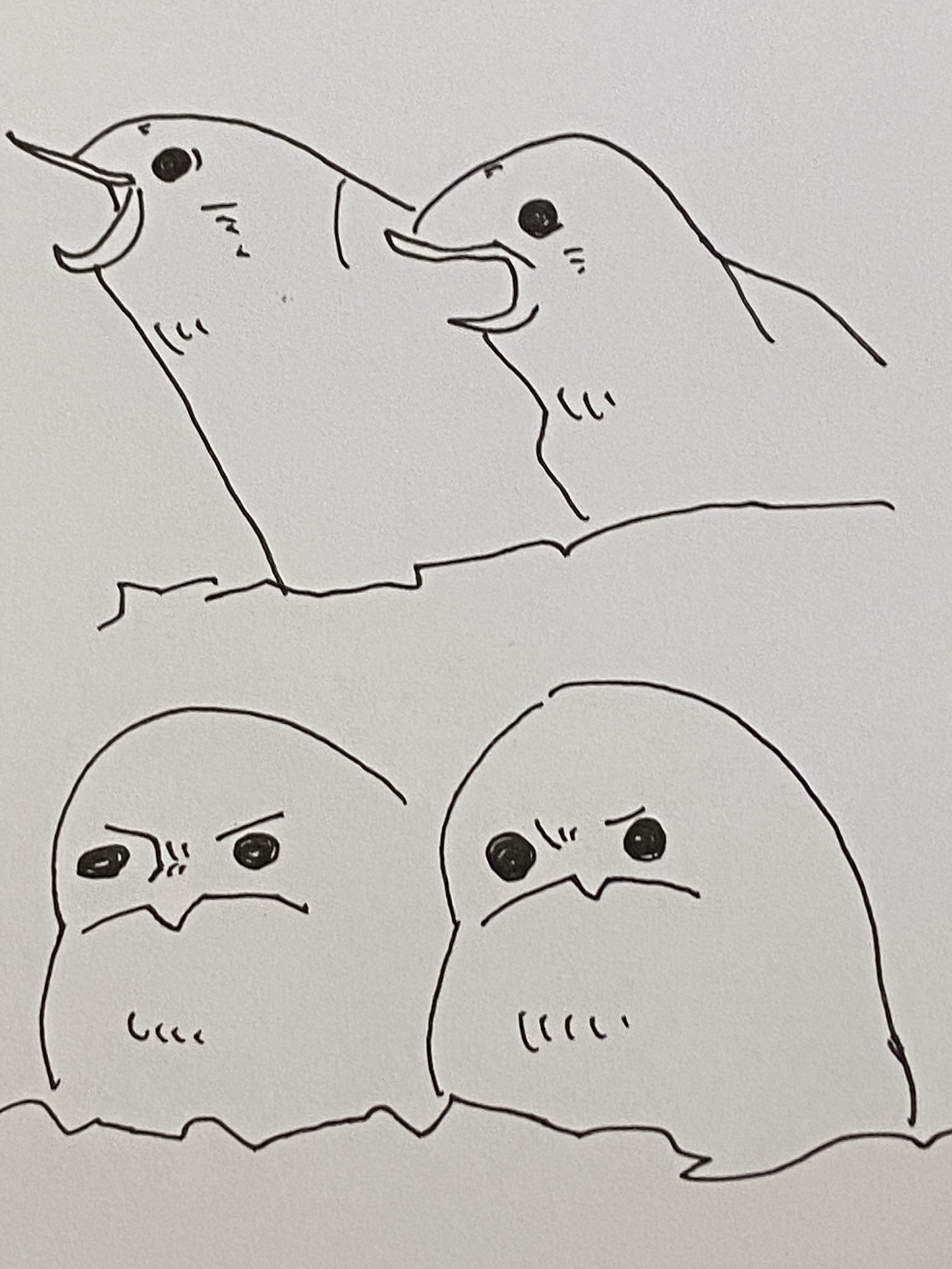 ▼網友們都被鳥寶寶奧嘟嘟的表情萌到,還有人把鳥寶寶失望的表情畫出來,雖然只有簡單幾筆,卻完全抓到精髓,讓人會心一笑。