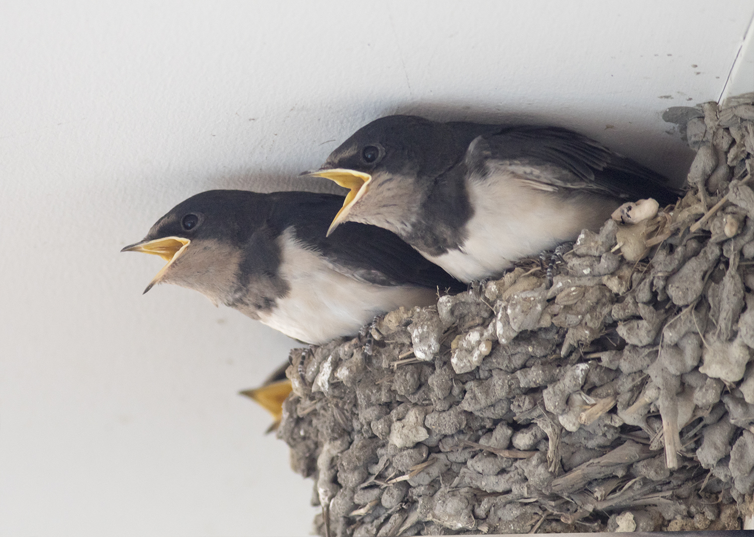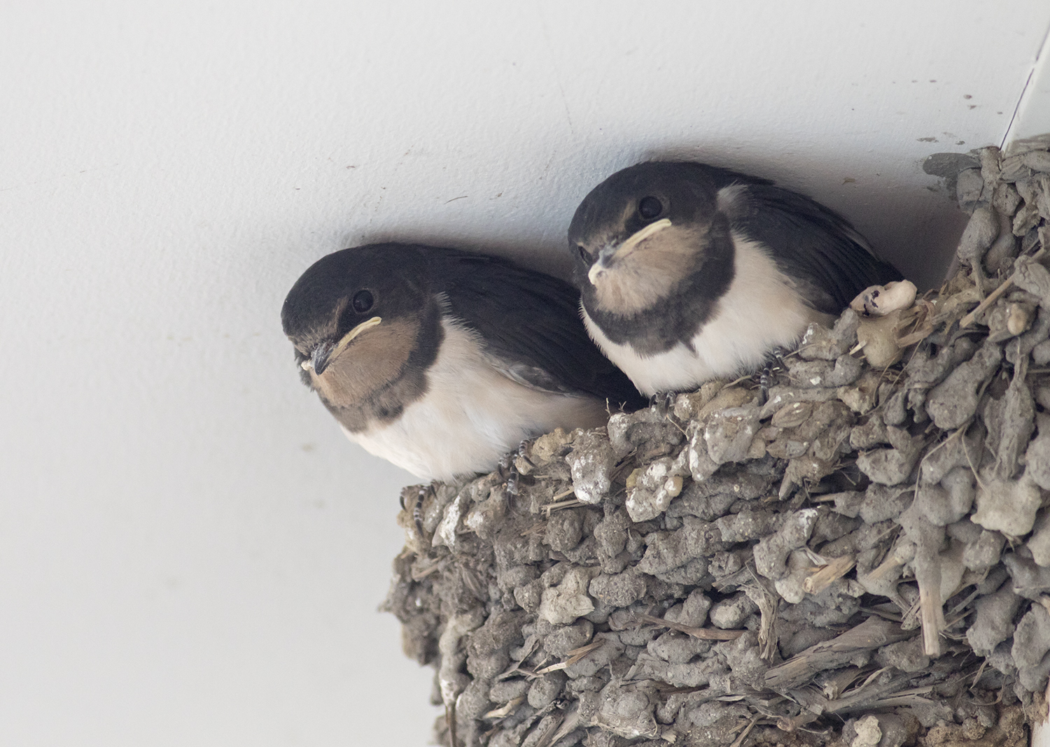 ▼鳥媽媽飛走後,鳥寶寶們閉上嘴巴、縮回脖子,窩到鳥巢裡繼續等待。牠們一臉奧嘟嘟,顯然無法接受媽媽的行為。