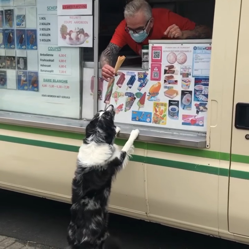▼Niko表示,Luna平時並沒有特別喜歡音樂,牠跟冰淇淋叔叔的友誼是偶然間產生的。賣冰淇淋的叔叔很喜歡動物,那天開車來這一街區時遇到了Luna,於是給了牠一個冰淇淋餅乾。Luna立刻被美味收服,從那之後只要聽到冰淇淋車的音樂響起,就會跑出去找冰淇淋叔叔撒嬌。