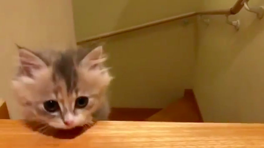 不能心軟! 小奶貓「努力學上樓梯」 爬到委屈屈「眼眶含淚」:泥可以抱偶嗎?