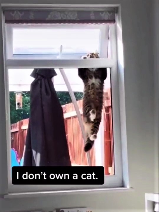 2020年09月03日明明不是自家的貓,為什麼要爬進自家的窗戶?有一天國外女網友@jayee1992遇到了一位不速之客,只見一隻陌生的虎斑貓攀在她家的窗戶上,正努力想要闖進來。她覺得這一幕很有趣,將整個過程都拍下來。胖貓努力爬窗的模樣讓網友們笑翻了!