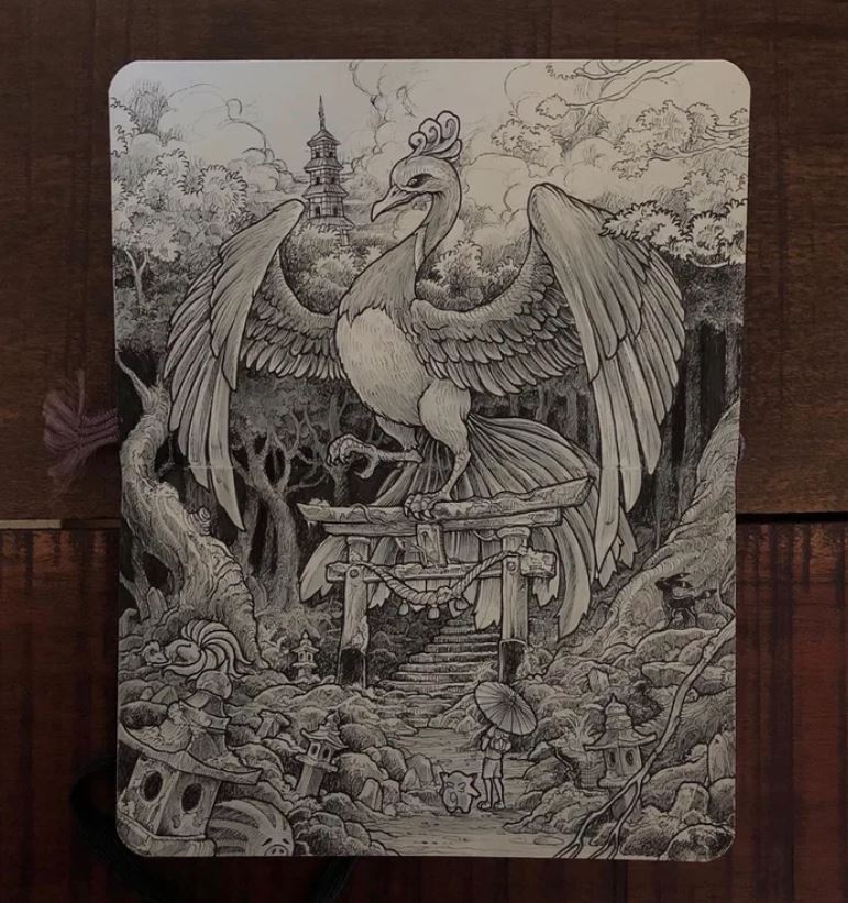 神獸版寶可夢太美! 插畫家超唯美筆觸:「鳳王」佔據整個日本超想收服~