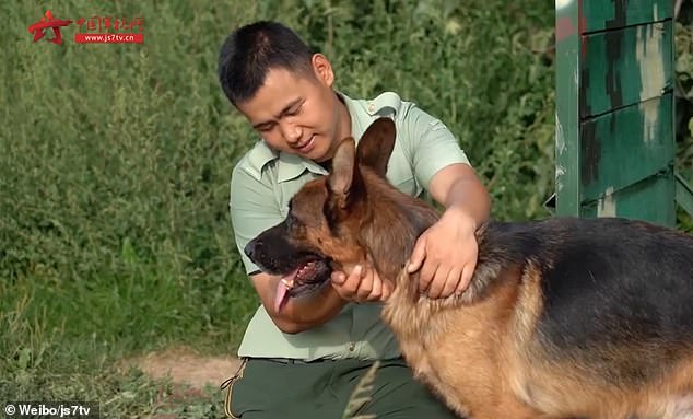 ▼張威和貝貝是最好的夥伴,相互陪伴好幾年,感情非常深厚。張威退伍時,另一位訓導員牽著貝貝去跟牠道別。貝貝扒著車門,用自己的方式想要挽留他。張威忍不住親了親他,雖然他也很不捨,但知道自己真的該離開了。