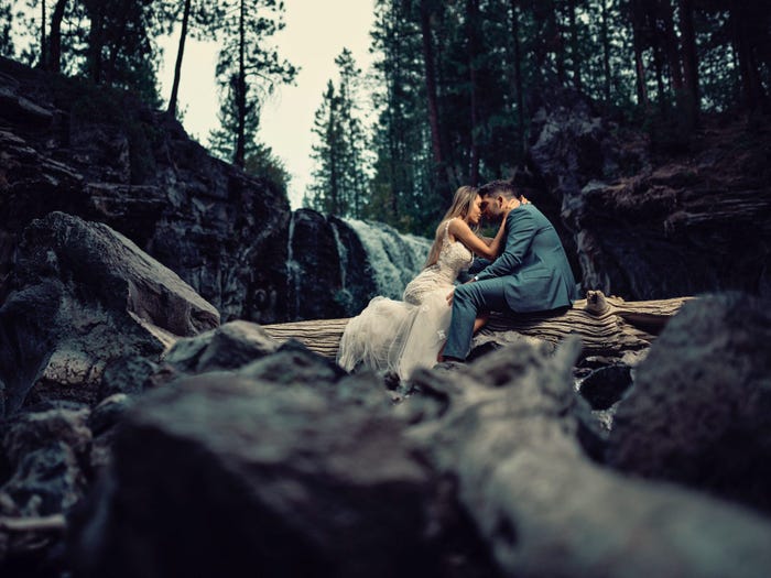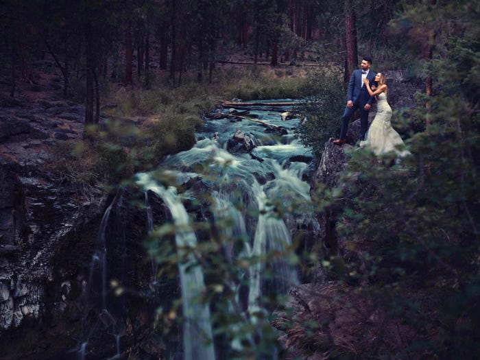 ▼舉辦婚禮後的第二天,James和Chelsie來到山林中拍攝婚紗照。他們在婚禮上跟家人拍了合照,這一天則是拍攝只屬於兩個人的浪漫照片。