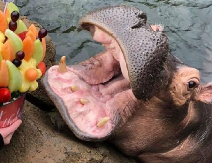 ▼這隻叫Fiona的河馬過了一個快樂的生日。