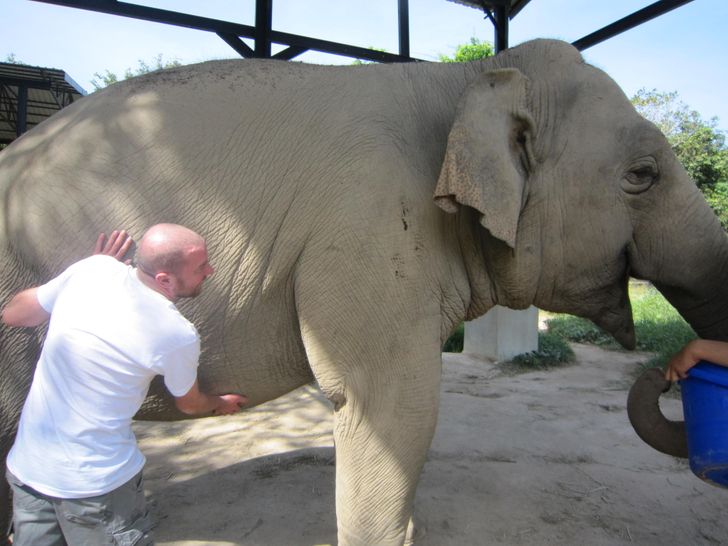 ▼這隻大象喜歡揉肚肚的感覺。