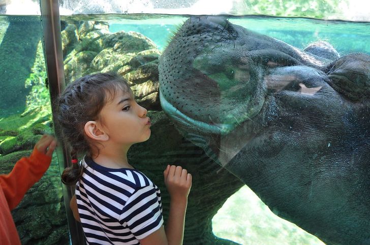 ▼河馬想跟她交朋友。