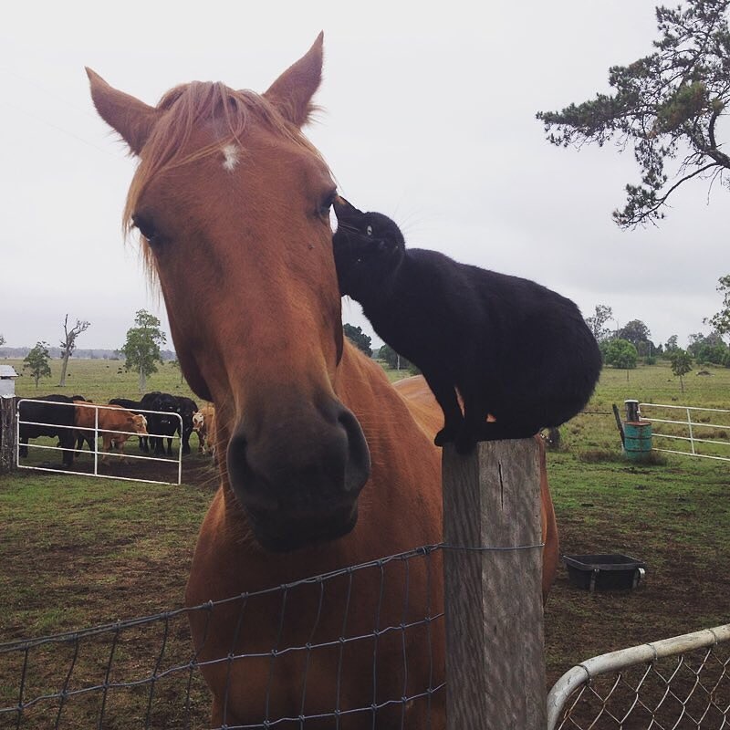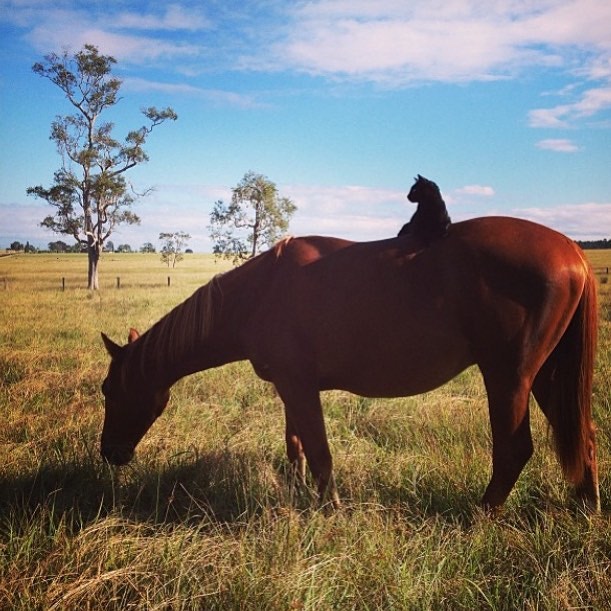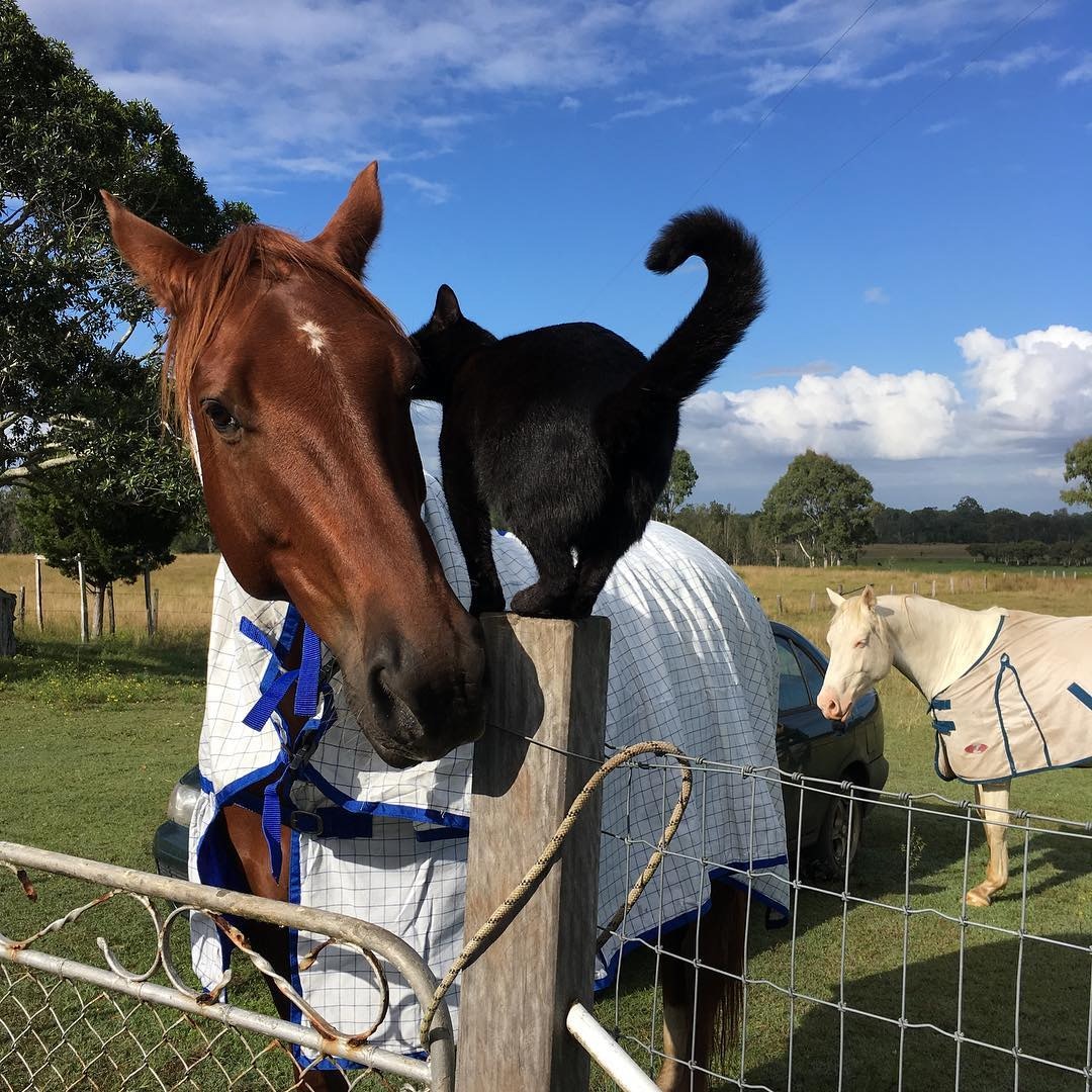 2020年09月04日跨越物種的友誼非常奇妙。澳洲女子Jennifer Boyle經營著一間牧場,6年前,她從一間動物收容所領養了一隻小貓。Jennifer將貓咪帶回家後,貓咪竟然與牧場中的小馬成為了好朋友。牠們每天一起休息、一起看風景,貓咪趴在馬背上的畫面超溫馨。