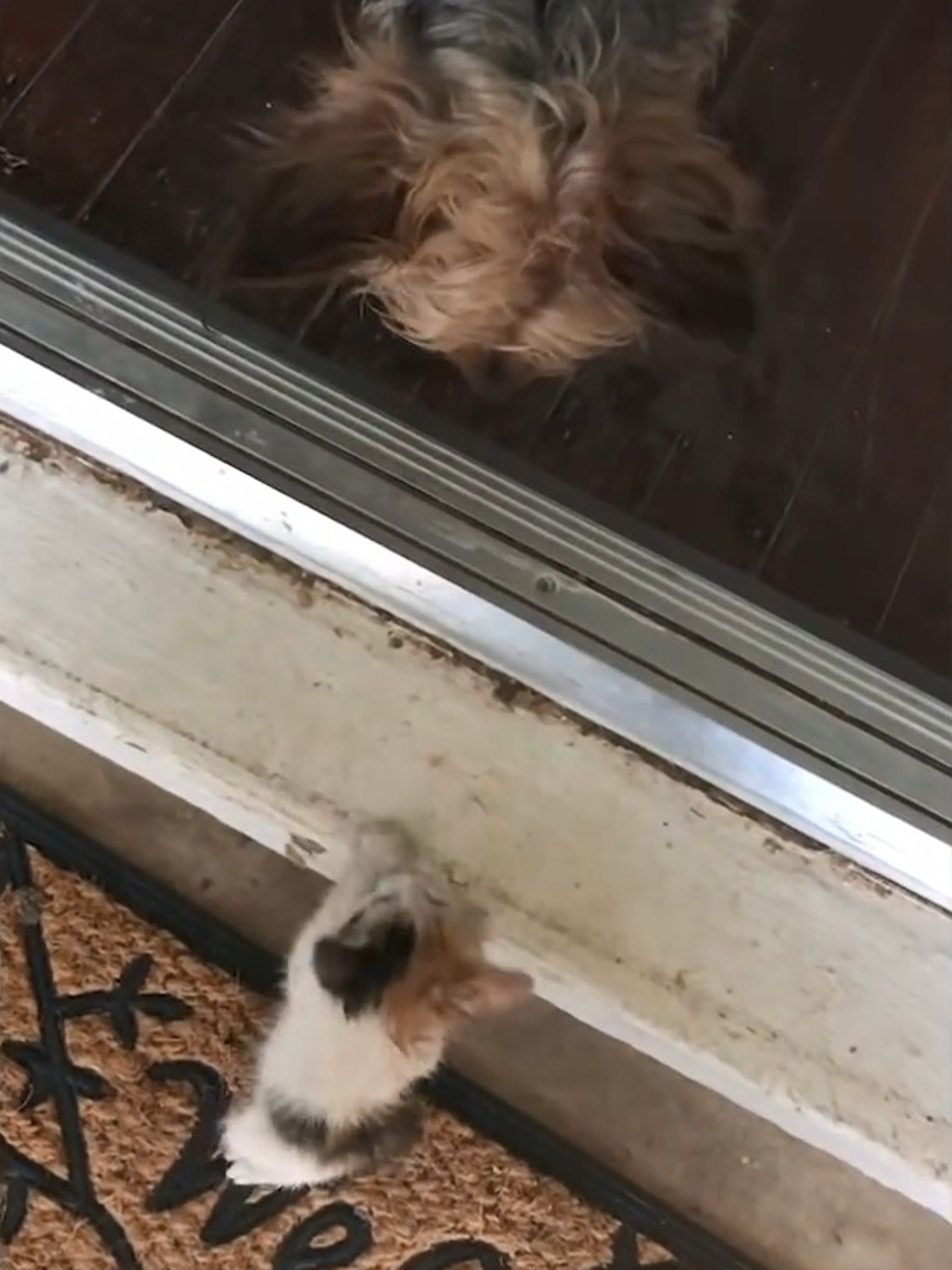 我家有很多好吃的! 約克夏散步遇小浪喵「一路拐回家」 媽好氣又好笑:你要自己照顧嗎?