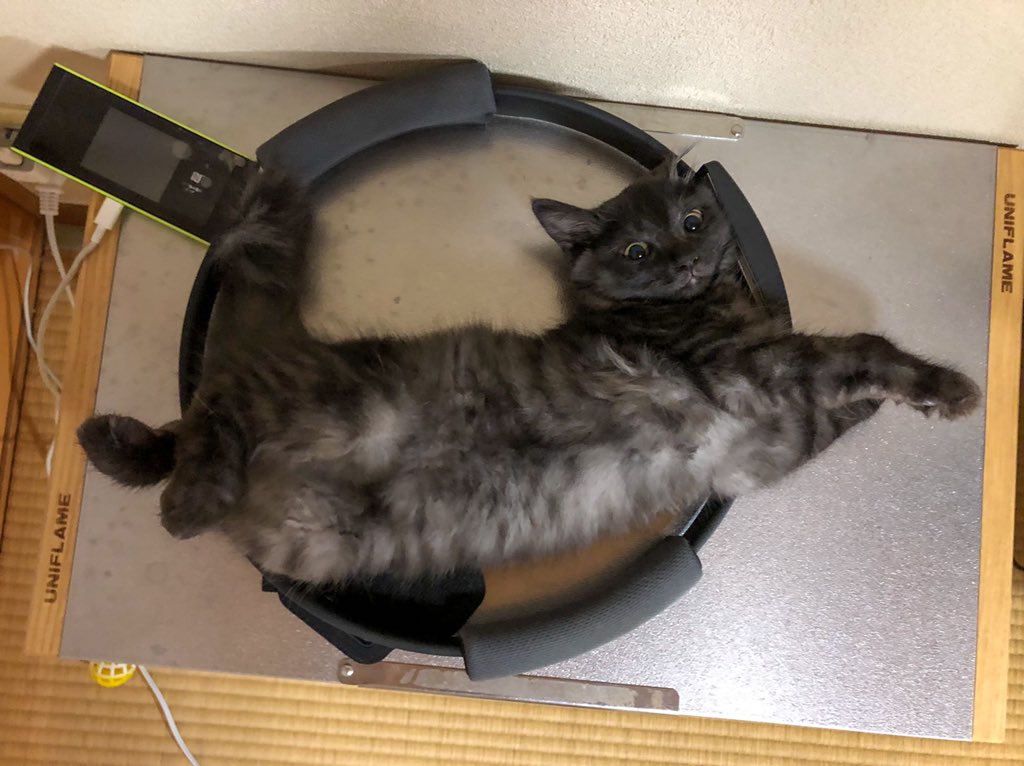 ▼健身環是用來健身的,但是躺在裡面的貓咪可能不是這麼想的~