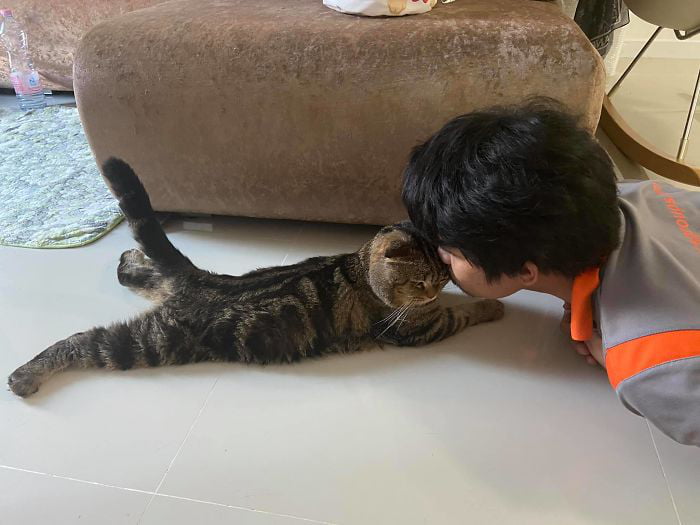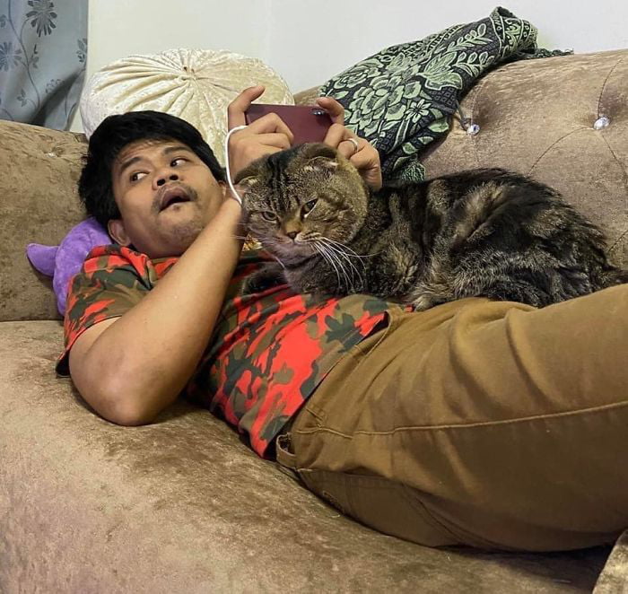 ▼一些網友看到Jarvis在餐桌上撒嬌,擔心牠會吃人的食物,Nasrin解釋說,Jarvis從沒有吃過人類的食物,連魚都不吃,只會吃貓食。牠其實非常乖巧,喜歡睡覺、看窗外的鳥,和爸爸玩耍。