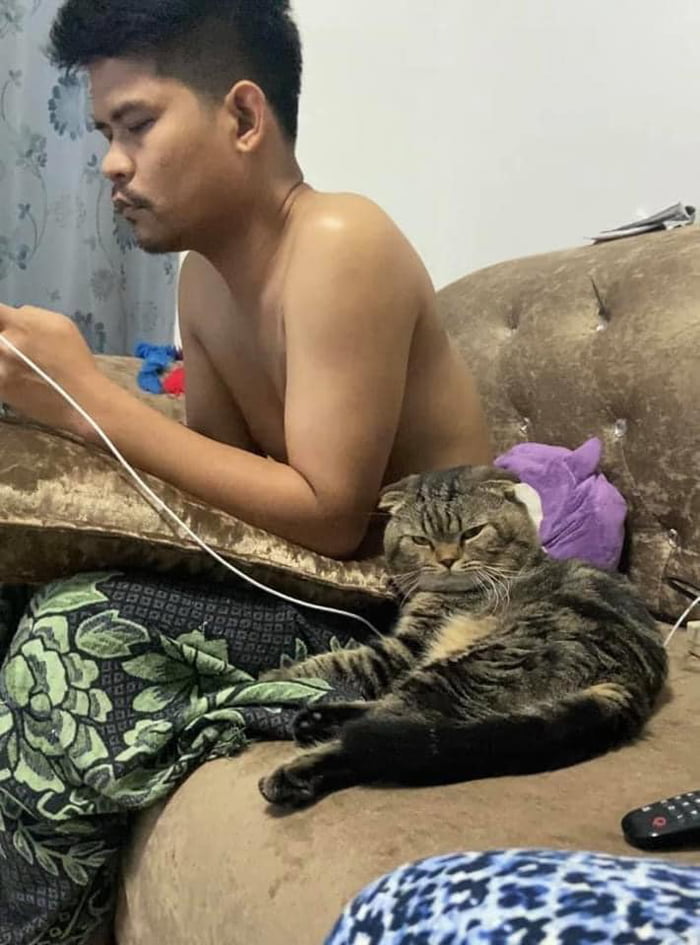 2020年09月12日這小三太囂張,也太強大啦!泰國女子Nasrin Hami和丈夫的生活中有一個「第三者」,那就是蘇格蘭摺耳貓Jarvis。Jarvis總是黏在丈夫身邊,跟丈夫感情親密,而且看Nasrin的表情超高傲,似乎在說:「這個男人是本喵的,妳別想跟我搶!」