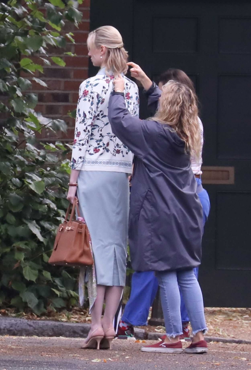 ▼在《天能》片場,妝髮師為Elizabeth整理頭髮時手要抬得很高,看起來就好累。