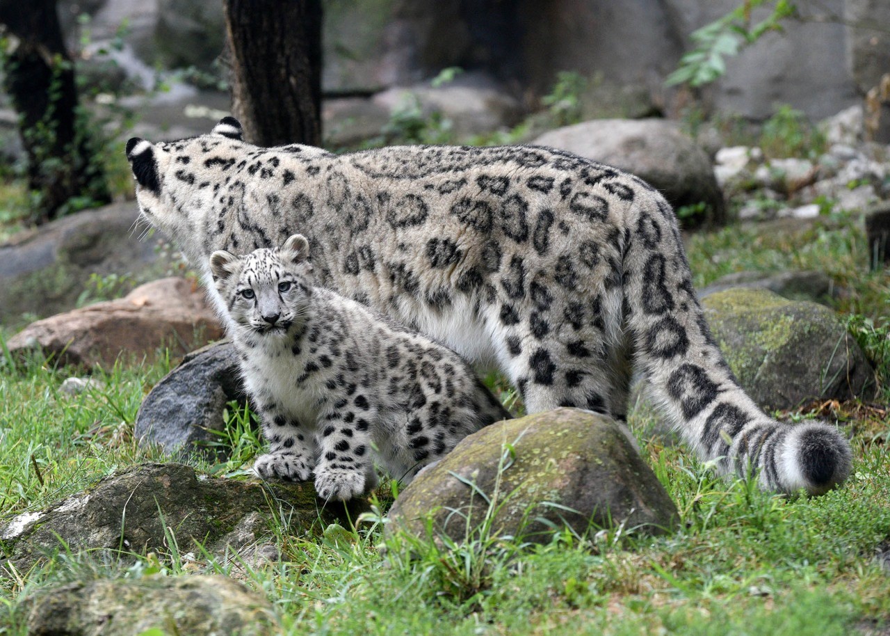 豹生第一次亮相!3個月小雪豹「躲媽媽身旁」見客 蹙眉臉網高呼:這就貓貓啊♡