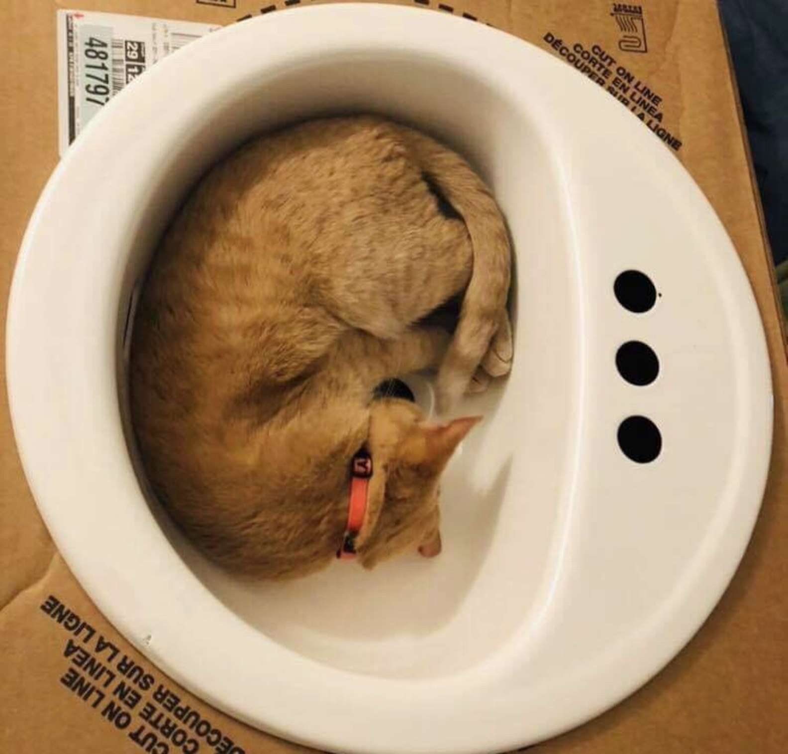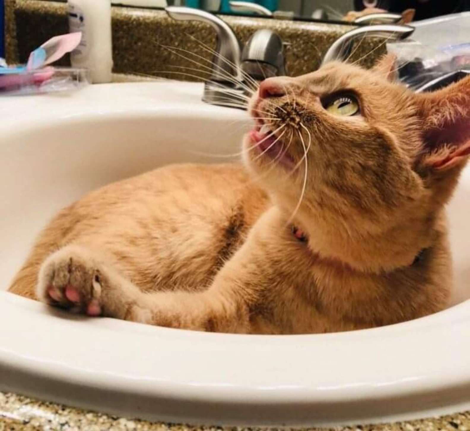 Lazuli窩在水槽裡懶洋洋的模樣好療癒,主人準備的這份禮物太對了,牠需要的就是一個專屬於自己的舒服水槽呀!
