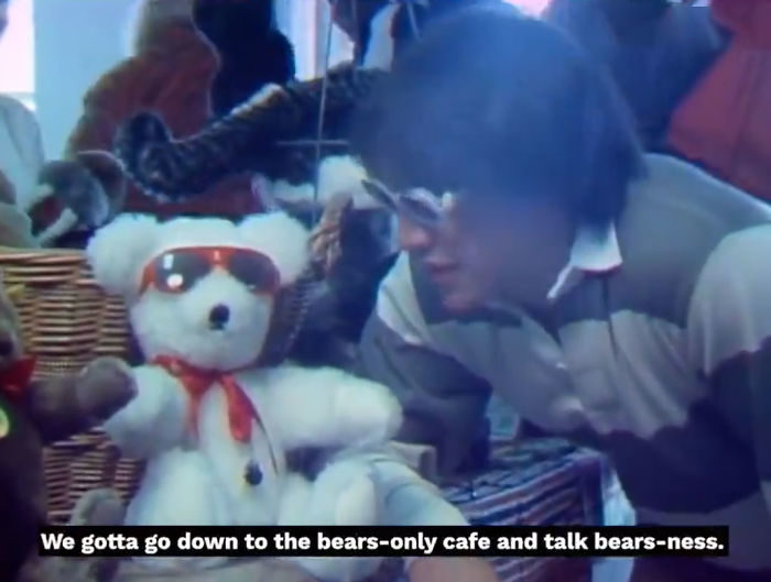▼基努李維在影片中非常好笑,他假裝採訪一隻戴紅色眼鏡的熊,還說:「我到處在找你,我們去熊熊專屬咖啡廳聊聊熊熊的話題吧!」