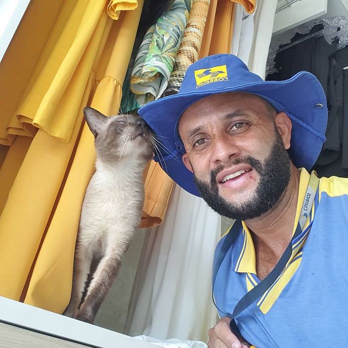 ▼Cristiano工作中不僅會遇到可愛的狗狗,還會遇到貓咪、兔子等動物。他對所有的動物都很友好,就連Facebook主頁都取名為「Carteiro Amigo Dos Animais」(動物友好型郵遞員)。