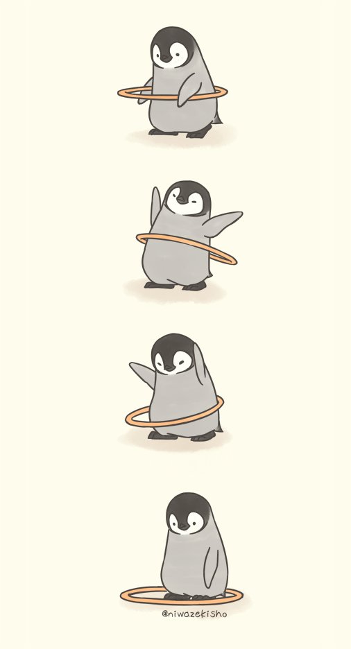 如果小企鵝過人類生活~ 超療癒插畫「小企鵝呆萌日常」:呼拉圈搖不起來超Q❤️