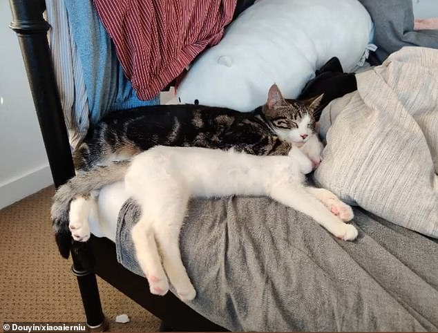 ▼這位網友家中有2隻貓咪,分別是7個月大的白貓,還有1歲的虎斑貓。這次的自拍照是白貓拍的。