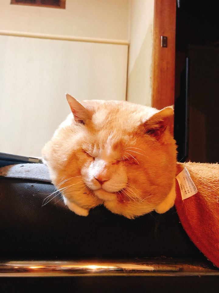 ▼這隻貓咪隨時保持著瞇眼的狀態,現在剛剛入秋,就要開始冬眠了嗎?那到了冬天該怎麼辦?