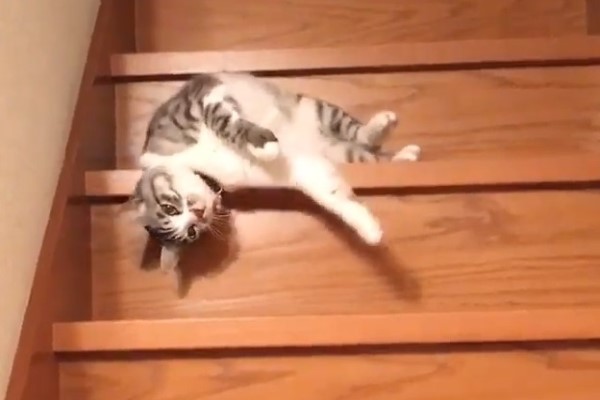 2020年10月01日貓咪果然是液體~日本推主@yuto0812127養了一隻叫「福坤」(ふうくん)的虎斑貓,平時牠看起來跟其他貓咪沒有兩樣,但牠下樓梯的方式卻很特別。福坤會化身「波浪」流下樓,一階一階滑下樓梯。網友們看到後都笑翻了:「真是懶的新境界!」