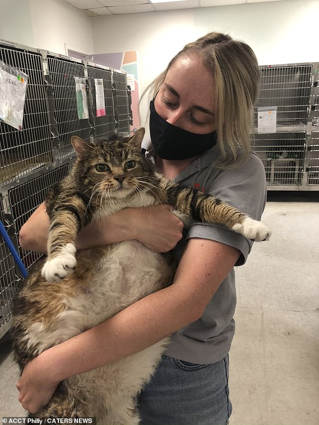 2020年10月03日胖乎乎的貓咪很可愛,但超重並不健康!美國費城有一隻叫Lasagna的5歲貓咪,牠的體重有13.6公斤,是正常貓咪體重的4倍。前主人拋下了牠,但這隻幸運的肥貓在收容所遇到了有緣人,新主人希望能幫牠減肥,並給牠一個溫暖的家。