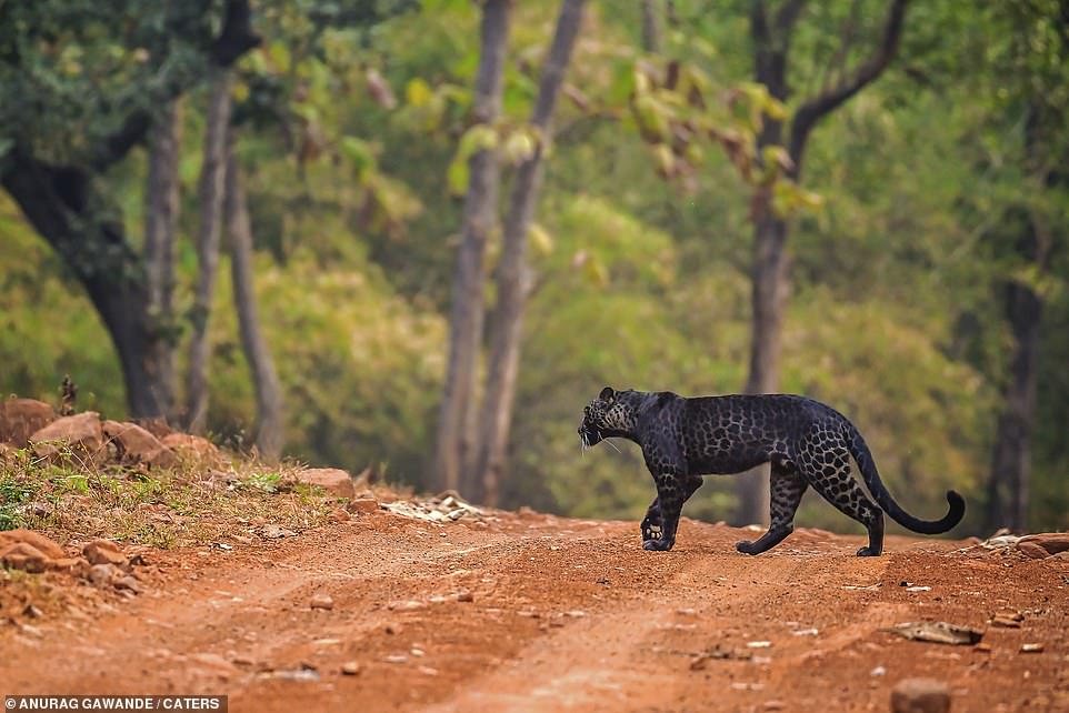 ▼24歲攝影師Anurag Gawande幸運拍到了這隻優雅、神秘的貓科動物。黑豹獨特的毛色是隱性基因突變造成的,這種現象跟白化症正好相反。