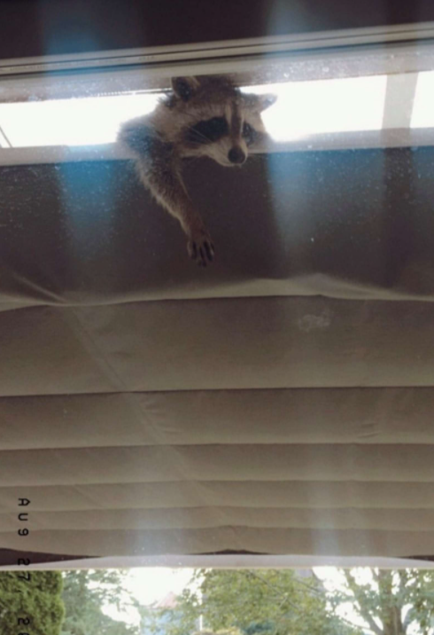 這隻浣熊胖乎乎的,體型不小,Heather擔心牠把遮陽棚壓垮,就將遮陽棚收了起來。從那之後浣熊就沒有再出現過,雖然看不到慵懶的浣熊很可惜,但為了牠的安全著想,還是請牠找其他地方睡午覺吧!